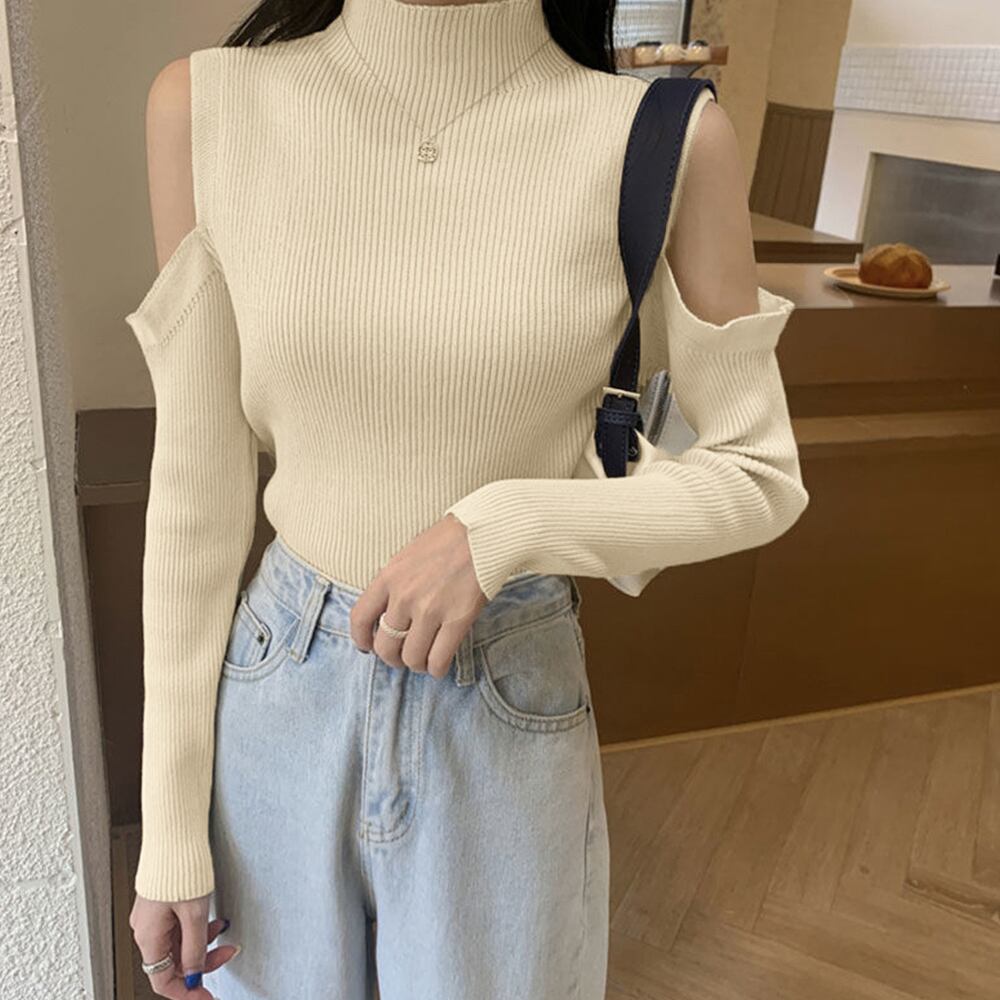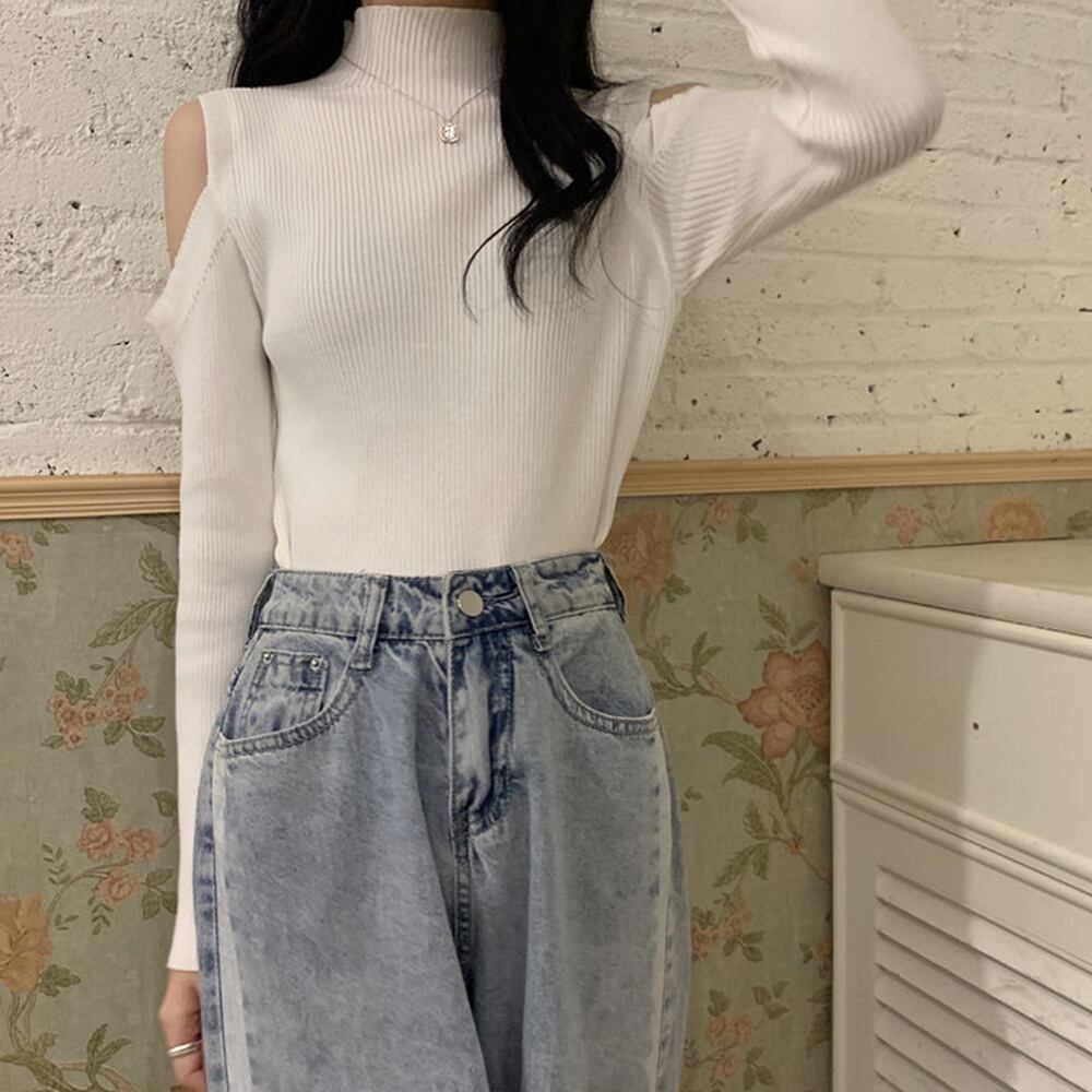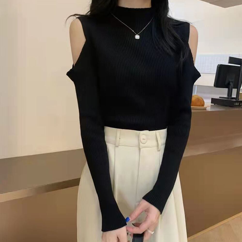 秋冬インナートップ/肌見せ リブニット/肩開き セーター