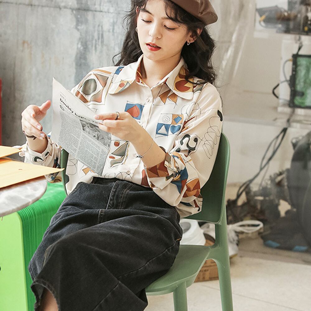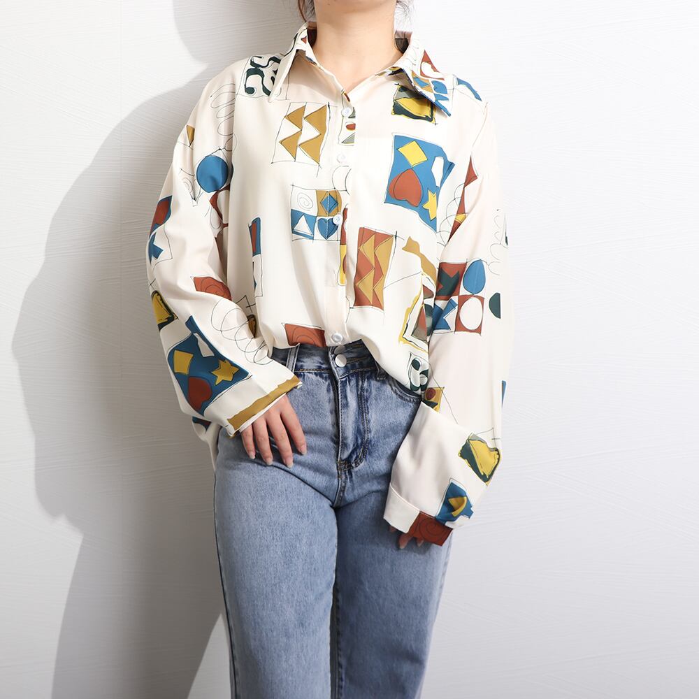 シャツブラウス プリントシャツ レディース ゆったり 長袖シャツ オシャレ 薄手 サラリ 肌触り良い 春秋 カラフル