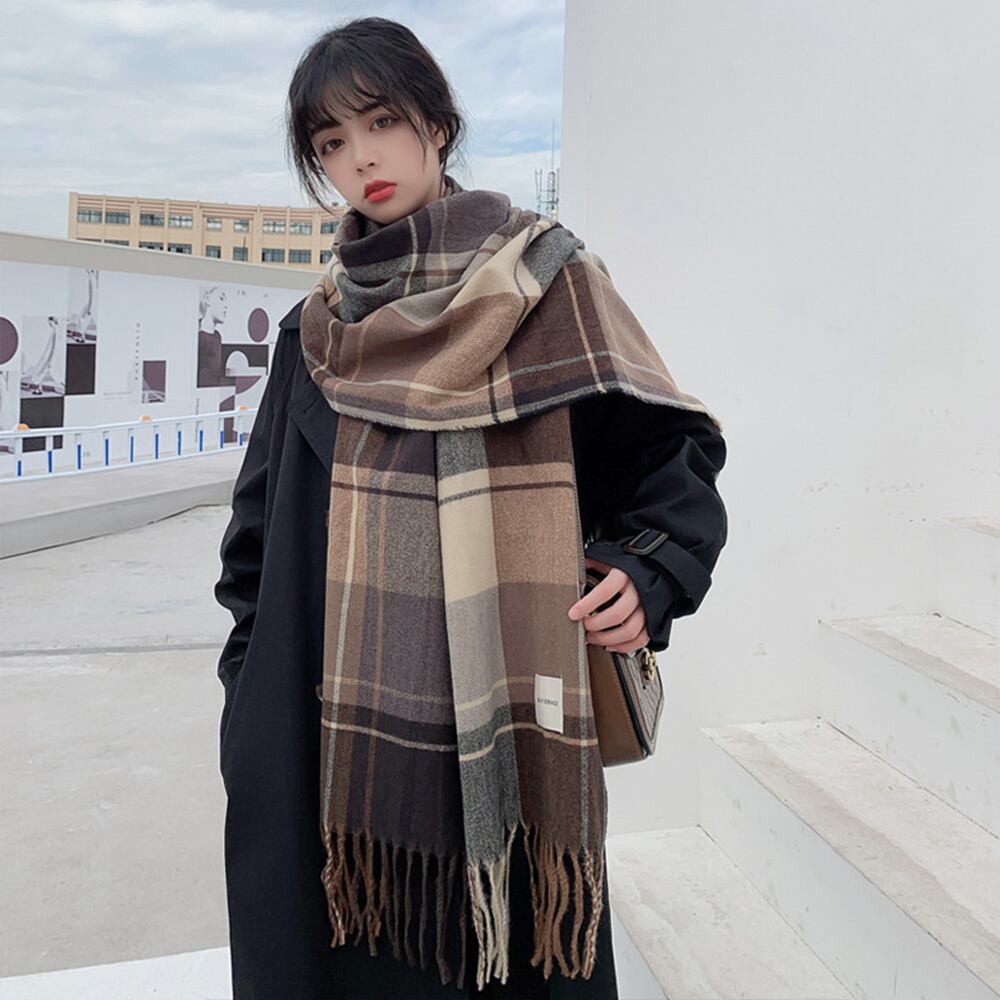 リバーシブルマフラー ストール ショール 防寒保温 チェック柄 フリンジ オルチャン プチプラ 暖かい 肌触りいい韓国風
