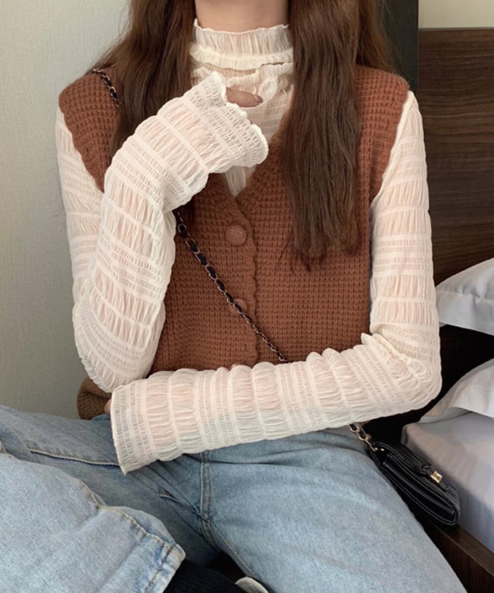 ニットトップス 前開き 韓国ファッション ボタン付き 重ね着 コーディネート かわいい カジュアル レイヤード 洋服