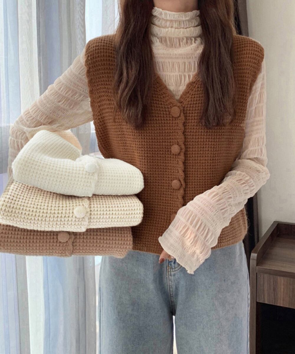 チョッキ 春秋冬/着回し 通勤通学/ノースリーブニット