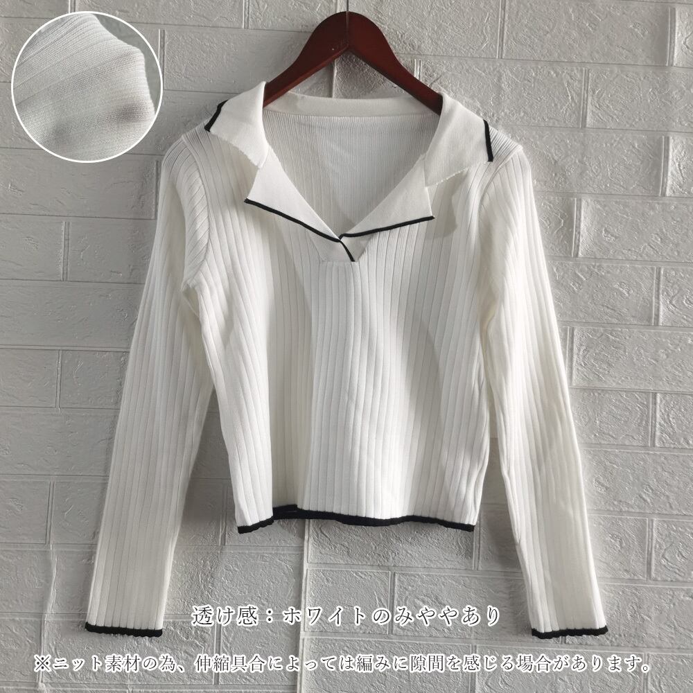 ニットプルオーバー/きれいめ トップス/襟付きリブニット