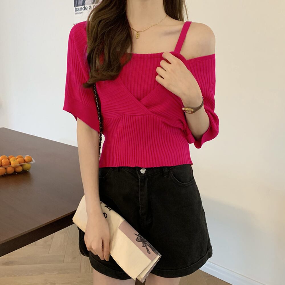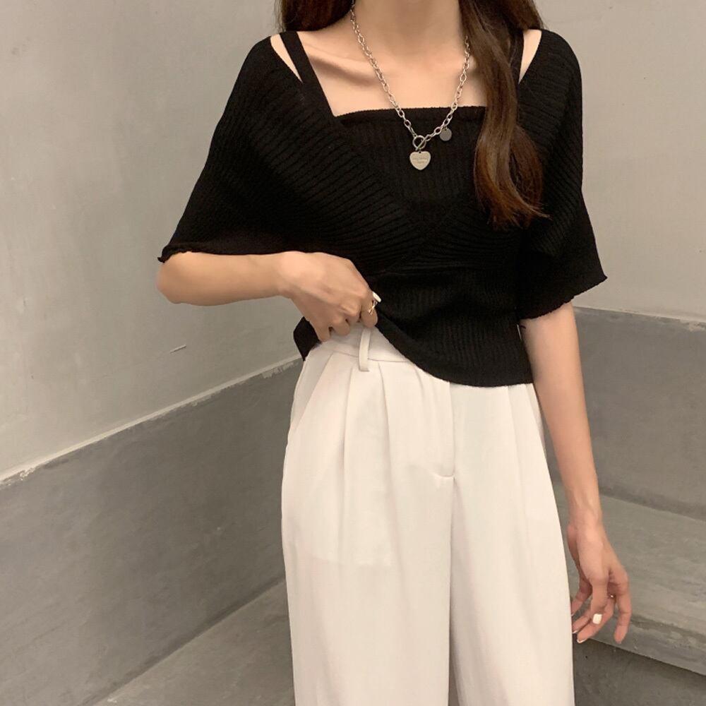 インナーキャミをレイヤードしたようなドッキングニットが登場